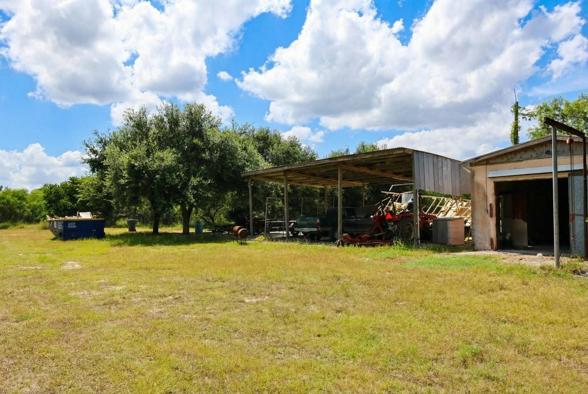 A North Alamo Water Supply Corporation line runs along the CR 2100 frontage and services an abandoned hunting camp within the ranch. Electricity is on site, and an artesian well flows directly into the central lake, providing a reliable water source. Improvements include a 20’ x 40’ shed and a 20’ x 25’ barn with concrete slab and cinder block walls.